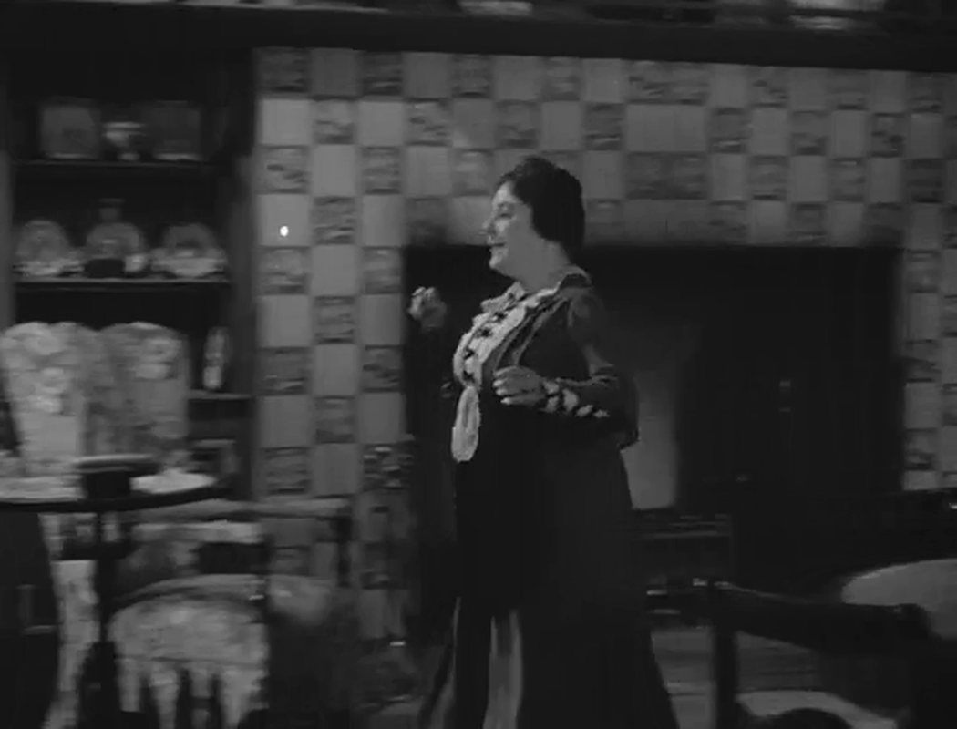 We hear a delicate and graceful pizzicato theme (associated with the aunts) as Aunt Abby scurries across the room |