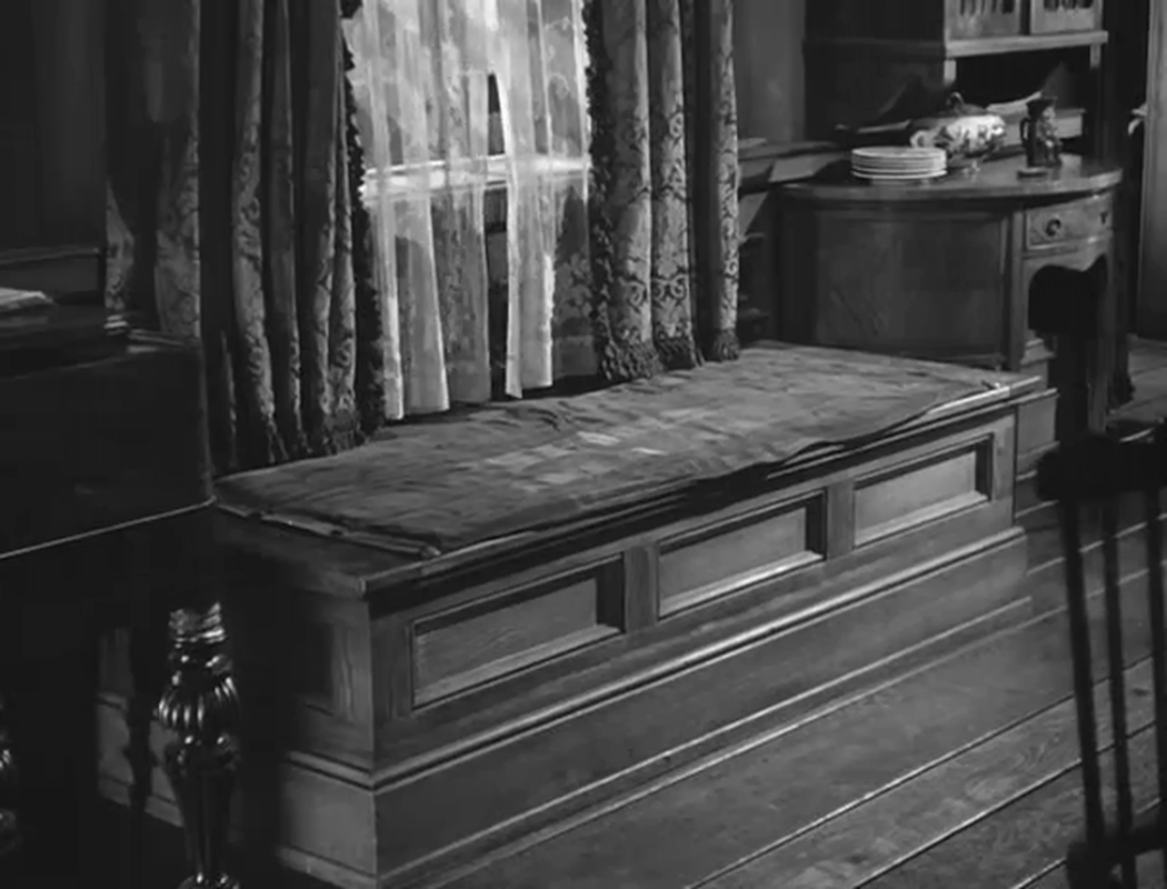 Description: Tremolo strings create a feeling of suspense for a mysterious wind gesture as we see the window seat where the body is hidden and the wind blows through the window above it