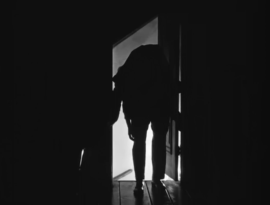 Teddy carries the body down the stairs |