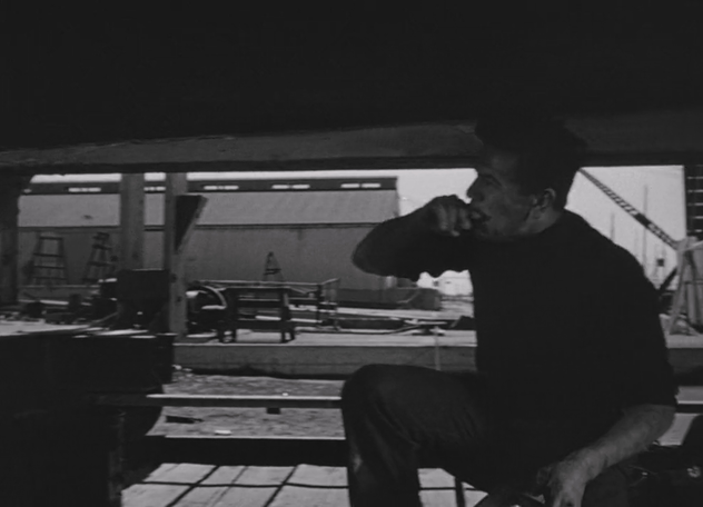 arriving | calm | criminal | friend | harbor | humming | leading man | on-screen music | sailor | source music | transition | walking | working