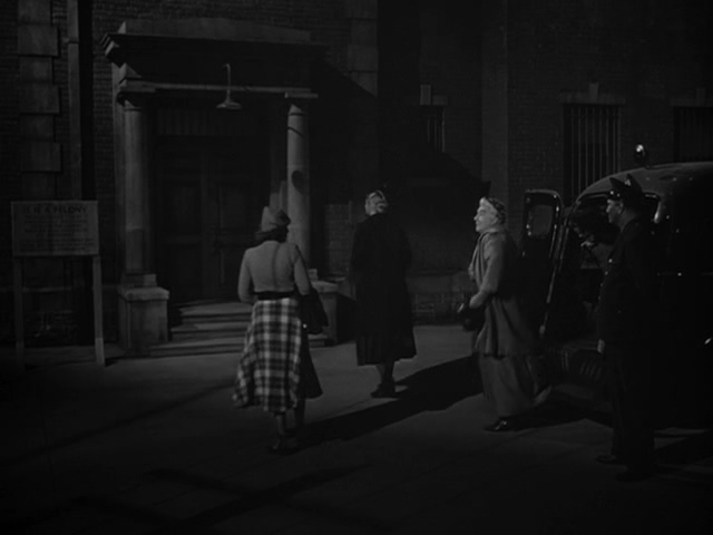 A descending chromatic gesture when the prisoners exit the police van; this theme was cut from the main title sequence but would have started around 0:01:27; this cue was recorded and is preserved in the Max Steiner Collection at BYU |
