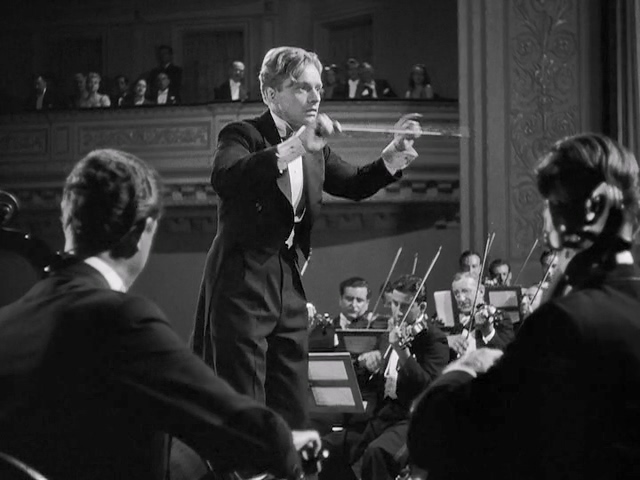 9th chord | added-note chord | audience | Carnegie Hall | common-tone diminished 7th | concert | concert hall | concert scene | conducting | conductor | dissonant bass | Dutch angle | excited | fragmentation | listening | musician | on-screen music | orchestra | playing | source music | watching
