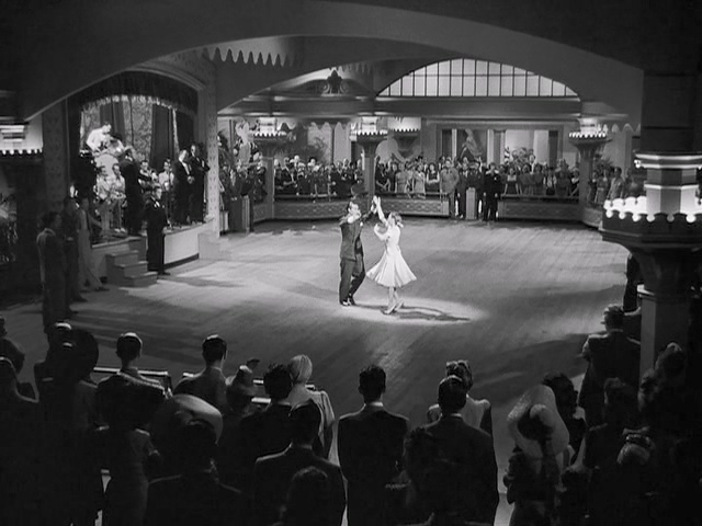 ABAC structure | conversing | crowd | dance band | dance hall | dancer | dance scene | dancing | leading lady | on-screen music | playing | popular music | source music | upbeat