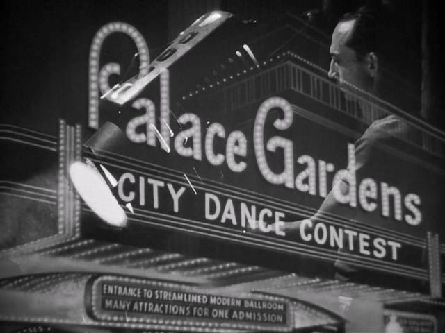 Description: The Palace Gardens marquee reads "City Dance Contest" and we again hear the dance tune "I'm Just Wild About Harry" as we see Peggy dancing on a stage