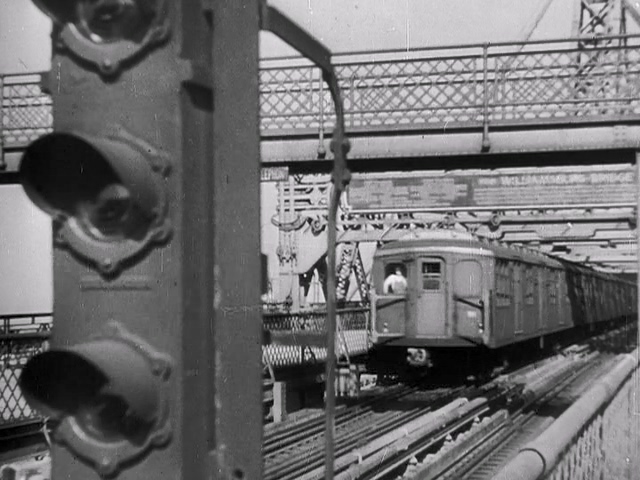 Description: Regular train-like rhythms as we see an elevated train approaching (setting up the entrance of the Tone Poem B theme)