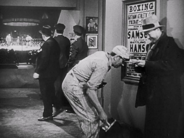 Description: We hear a bit of of a brass band playing as the montage comes to an end and we see a boxing match taking place