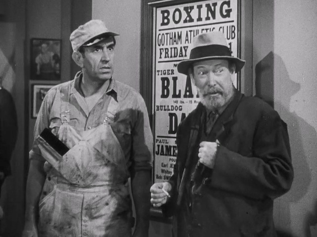 As the boxing match comes to an end, we hear the band begin to play triumphant music; the music cuts off suddenly as the door to the locker room closes