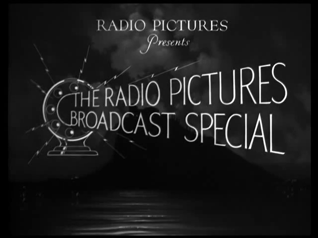 Mysterious four-note motif in the low brass announces the film; followed by a dialogue between high and low brass; there is a rising gesture as the words "The Radio Pictures Broadcast Special" appear on screen from left to right |