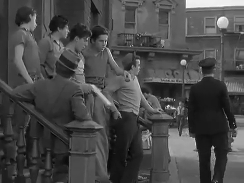 comical | establish character | gang | on-screen music | source music | street | teenager | whistling
