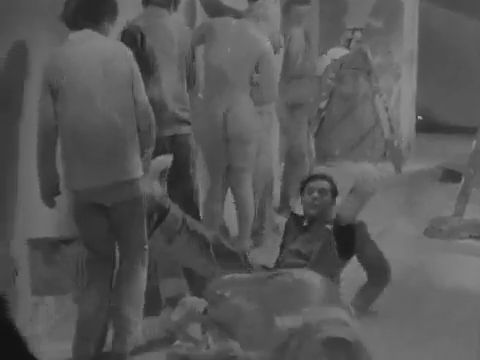 Guard chases boy then slips and falls on paint |
