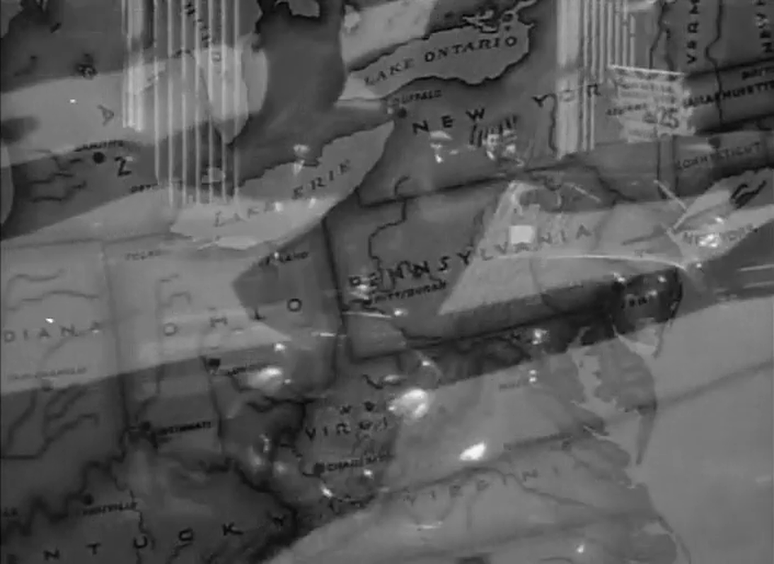 [m. 5] Dissolve to street / G. walks; [m. 6] Dissolve to map (no walk) / Black line starts; [m. 7] Money + moving back ground; [m. 9] West Virginia; [m. 10] Dissolve / (Rooms 50 + 95 cents) / (Kentucky); [m. 11] Tennessee (money exchange); [m. 13] Moving B.G. Mississippi / Arkansas; [m. 14] Money exchange |