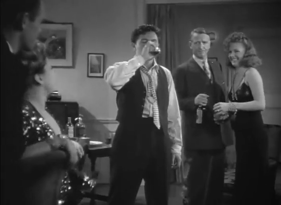 AABA structure | attacking | conversing | drinking | fighting | floozy | jaunty | leading man | murder | murdering | murder scene | partying | radio | room | source music | violence