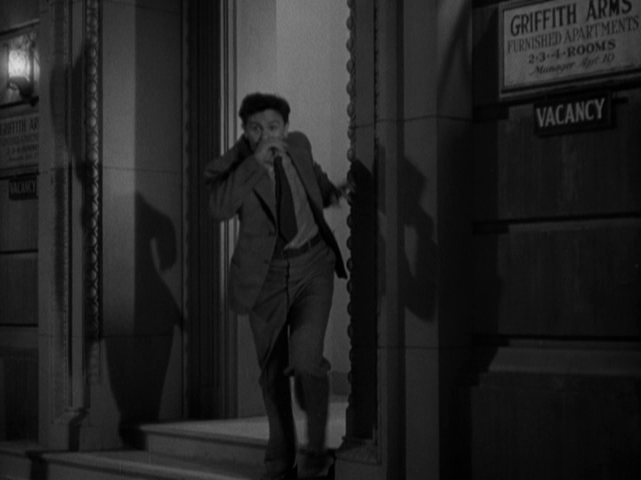 augmented triad | chromatic parallelism | chromatic scale | conflict | dramatic | gangster | half-diminished 7th chord | hero | leading man | mickey-mousing | newspaper editor | running | street