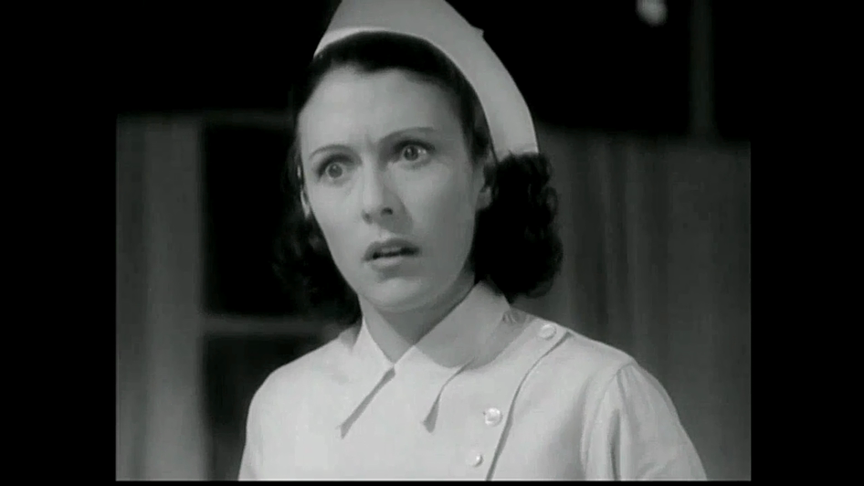 Description: A dramatic cue beginning with a stinger as the nurse's eyes open wide (the "Courage" theme from Most Dangerous Game, combined with the oscillating "Iron Door" motive); we see a gangster reading a newspaper with the headline "Police Net Closing on Killer / Early Capture of Broken Nose Dawson Believed Certain / Police Hot on Trail"