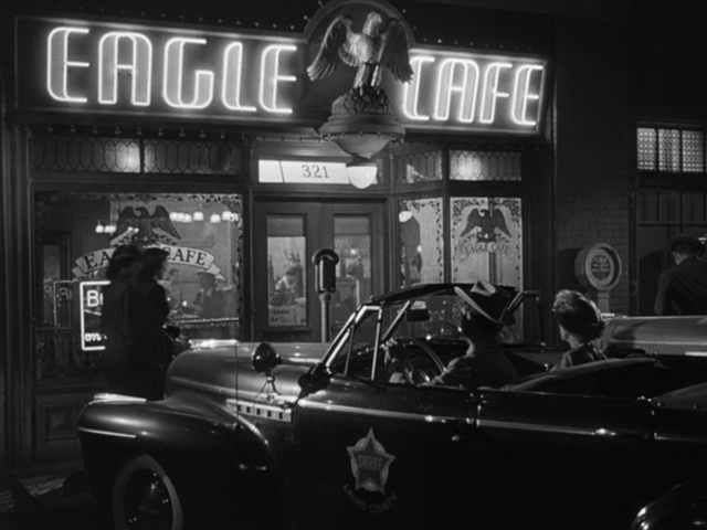 Description: An upbeat, brassy popular tune is playing on the radio at the Eagle Cafe as Field and Lane enter