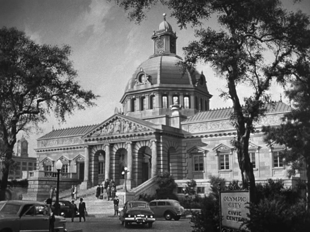 A bold, noble sounding theme is used for a shot of the capitol building; this music was taken from a cue in Crime School called "The Courthouse" (which was cut from that film) |