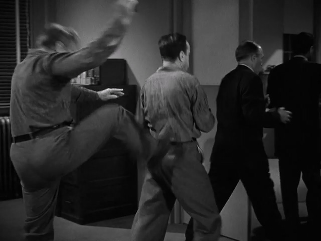 [m. 90] Kicks him |