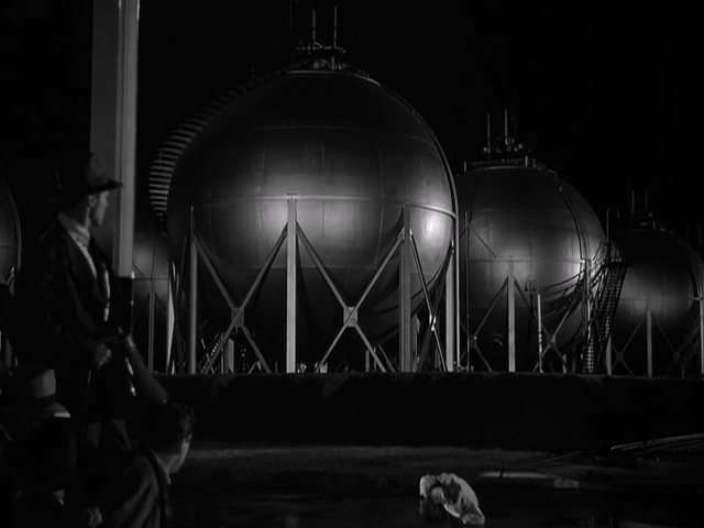 action scene | agent | dark | death | dying | factory | fugitive | gangster | laughing | leading man | murder | murderer | police | raid | stinger