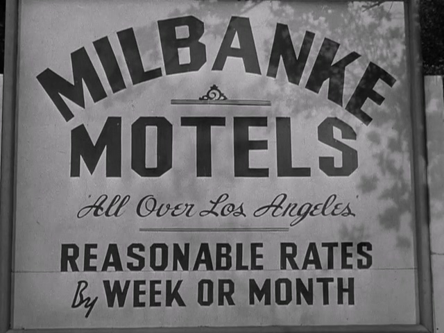 Description: Rapid-moving scalar gestures in the strings represent a speeding car; Steiner borrowed this theme from Crime School (1938), where it was used for a speeding police wagon; the music pauses when the car changes directions