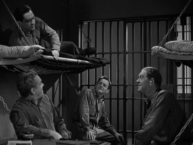advance plot | ascending | gangster | jumping | leading man | mickey-mousing | murderer | prison | prisoner | undercover agent | uneasy