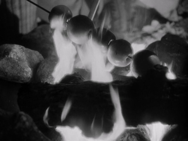 An old man named Loti sings a scary song to the children as they roast apples on a fire; Steiner harmonizes his off-key singing with wordless female chorus and other weird instrumentation accented by harp arpeggiations |