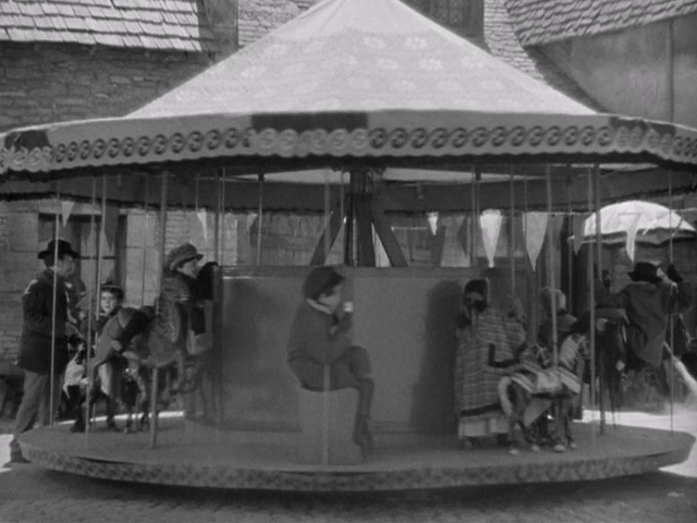 Fun, bright carousel-like music using a Hammond organ, celeste, bells, triangle, and finger cymbals; we see the kids riding on a carousel; on-screen is the text "A few perfect days ... festive and carefree ... merry with the sound of the children's laughter"; as the camera shifts from the carousel, the rhythms of the carnival continue but become more subdued and the tempo starts slowing down |