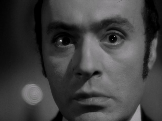 The Duke slowly moves towards the Duchess in a menacing way with glaring eyes; the music grows more and more tense until the Duchess screams and a close-up of her blurs, suggesting a violent end at the hands of the Duke; the music ends with a dissonant sustained chord |