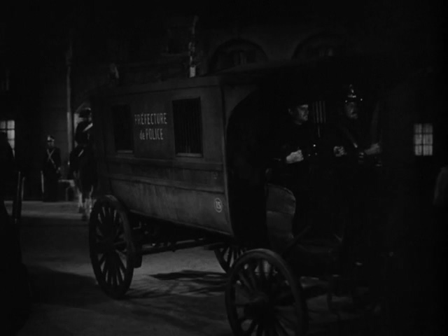 Tense underscoring featuring slowly descending chromatic lines as the carriage arrives and Henriette steps out |