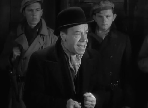 A pleading chromatic line is played by the cellos as Peter defends himself against Gypo's accusation; a dissonant stinger initiates the cue |