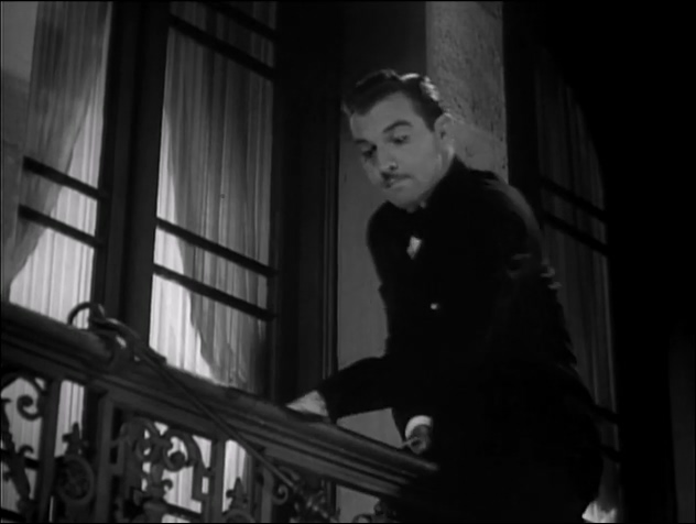 Rapid running music as Steve tries to escape the scene of the crime; brass accents and dotted rhythms as he escapes; descending gesture from high to low register instruments as Steve falls from the window through an awning; dramatic escape music continues as jumps onto a moving car