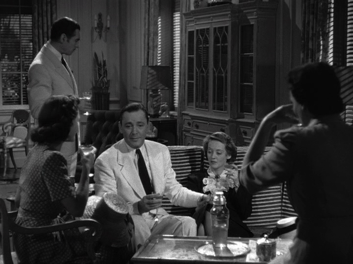 Dinner music to establish the setting; light, bouncy melody with active strings and winds; turns minor at the end -- although the conversation is very pleasant, there is a dark undercurrent between Leslie and Howard, who know much more than the others |