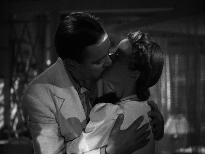 A soft halo of strings surrounds the kiss in this scene [the music is interrupted at the end by an awkward film cut] |
