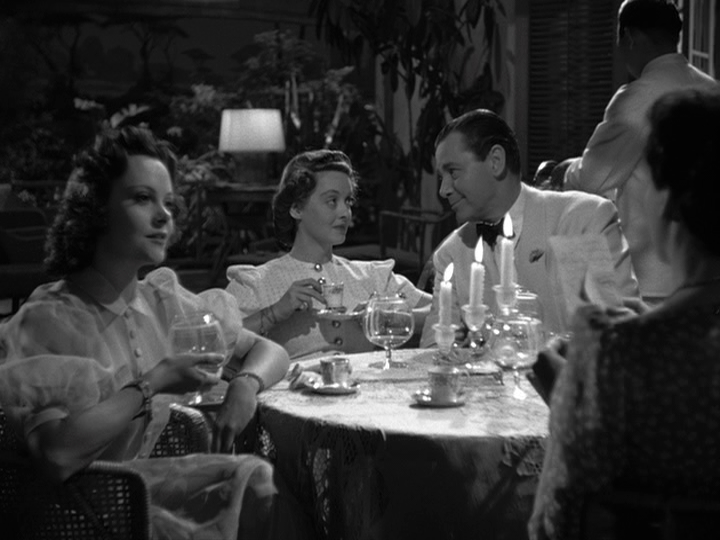Dinner music to establish the setting (supposedly being played on the radio or a record player); light, bouncy melody with active strings and winds; the music turns dark when she says "it's a coverlet for our bed" and Leslie and Howard exchange cautious glances |