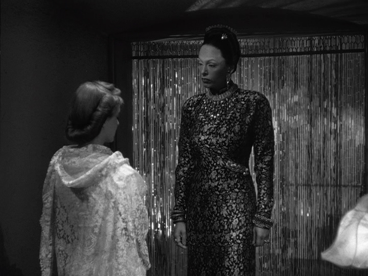 Description: Glass curtain music continues as Mrs. Hammond and Leslie face off against each other; the mood is mysterious