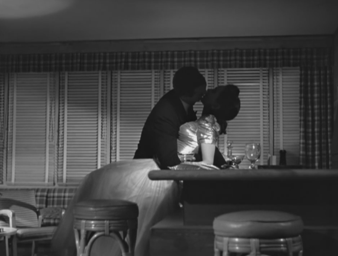 The theme associated with the revealing of secrets (previously associated with Veda learning that her mother worked as a waitress and Mildred learning that her daughter had been secretly married) is now brought back at the moment in which the film's darkest secret is revealed - the illicit relationship between Veda and Mildred's husband Monte; it begins with a slithering bass clarinet line, followed by harsh, chromatic woodwind gestures |