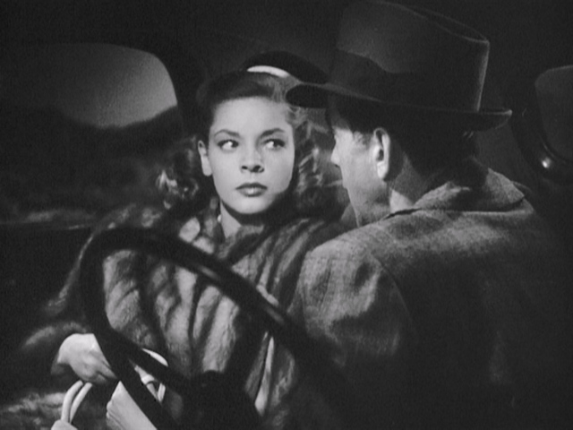 accusing | car | chromatic parallelism | half-diminished 7th chord | leading lady | leading man | love interest | love scene | pedal tone | private eye | tense | underscoring