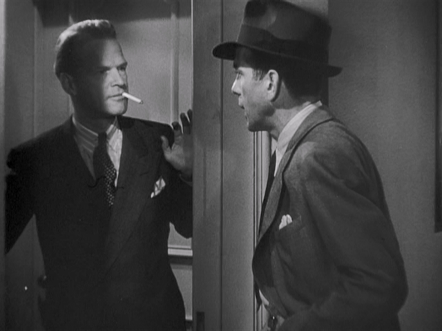 blackmailer | chromatic parallelism | conversing | criminal | gun | investigation scene | leading man | mysterious | private eye | room | suspect | underscoring