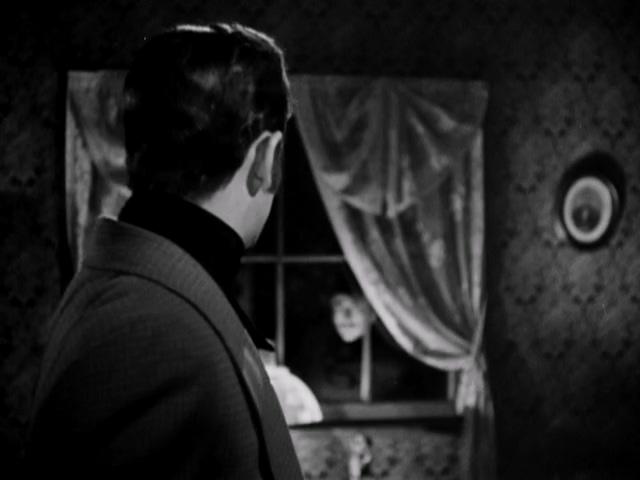A stinger as Marian sees Sir Percival spying on them through the window; followed by a lyrical gesture as Marian pleads with Walter to be careful |