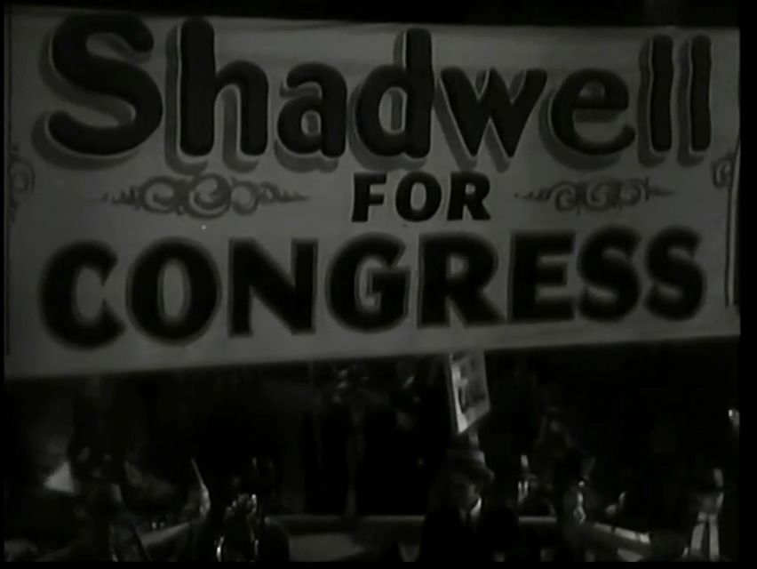 Description: At a rally for John Shadwell (who is running for Congress), we hear a brass band playing "Hot Time in the Old Town Tonight," a tune that was often used by politicians in the early part of the twentieth century; there is a brass band on screen